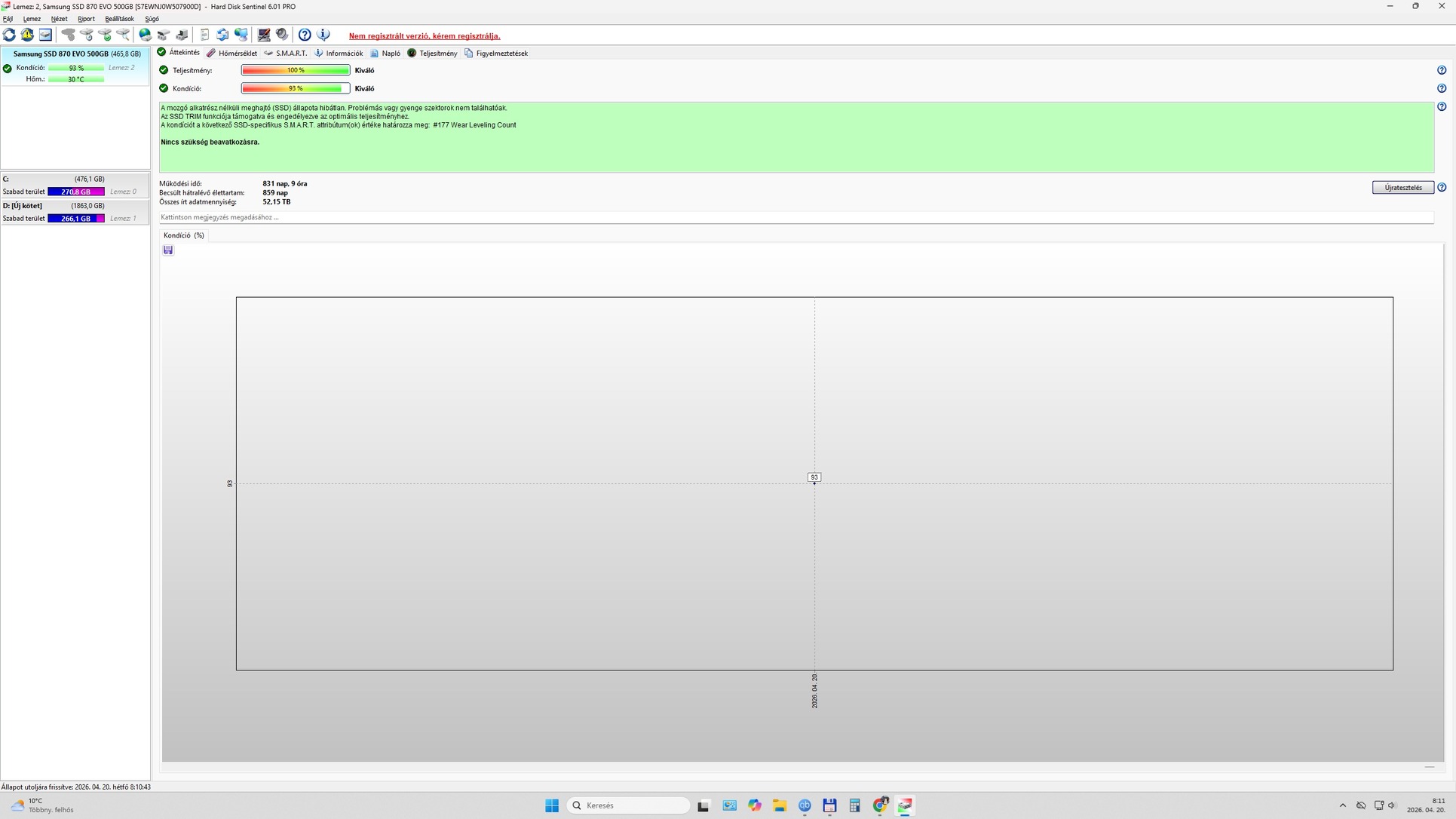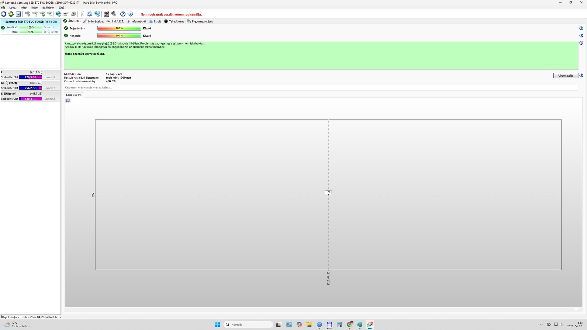 2️⃣Kondíció: 100% FOGLALVATeljesítmény: 100%Működési idő: 55 napÖsszes írás: 4,92 TB