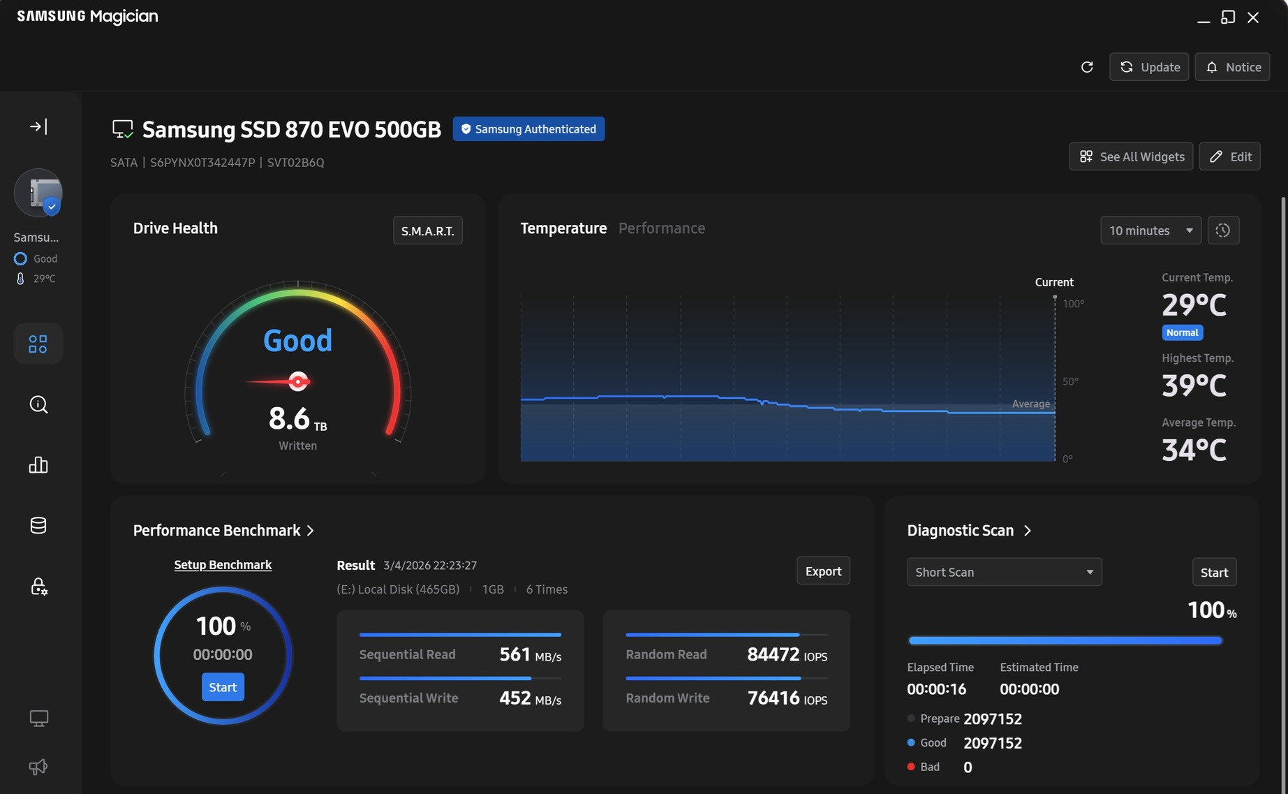 Samsung 870 EVO 500GB SSD 100/100