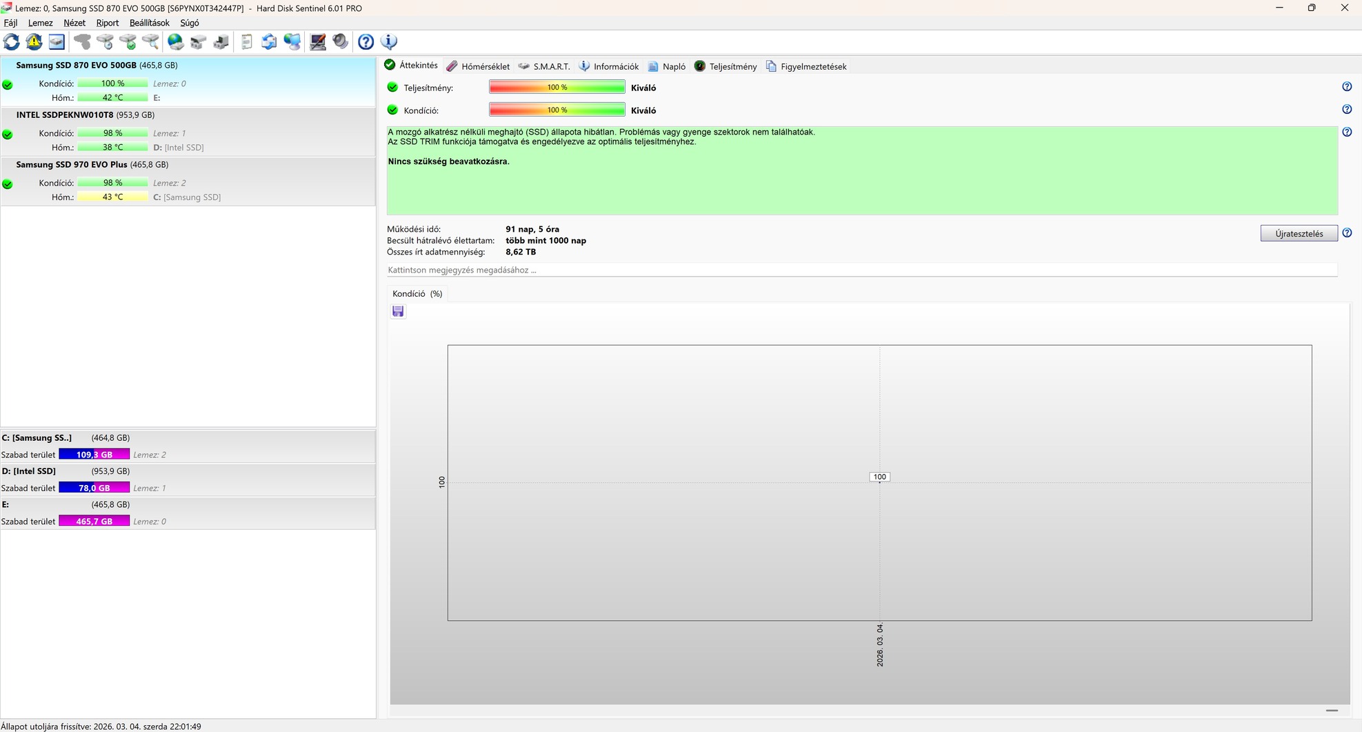 Kondíció: 100% / 100% (Hard Disk Sentinel által ellenőrizve)