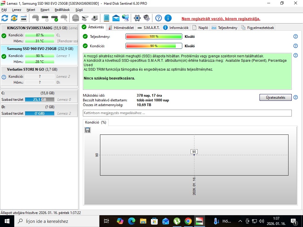 Samsung 960 EVO 250GB M2 NVMe SSD, hibátlan állapotban eladó.