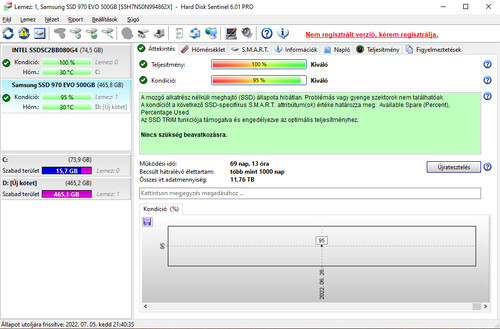 Eladó egy 970 EVO 500GB PCLe NVMe SSD dobozában. Kondíció 95% 12TB írt adat, gyári garancia 2025.októberig.