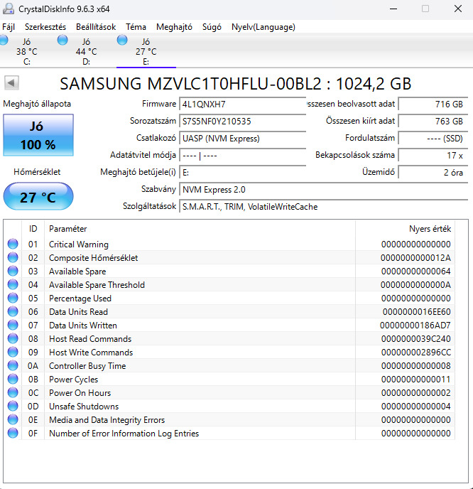 Samsung 980 1tb Pcie 5.0 2280 eladó, 2 órát futott