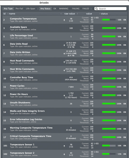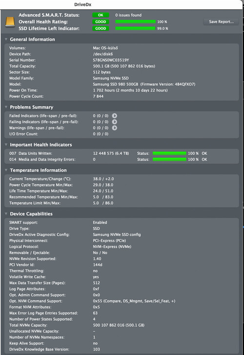 Kiváló állapotban lévő, 6,4 TB írt adattal, DriveDx teszt jó állapot.