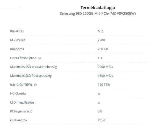 Téves rendelés miatt eladó 2 db vadonatúj Samsung 980 NVMe 250 GB SSD.