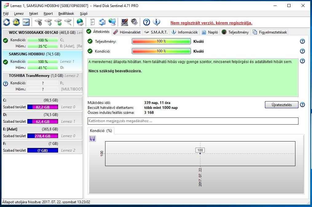 Samsung 80Gb Sata merevlemez HDD 100/100%