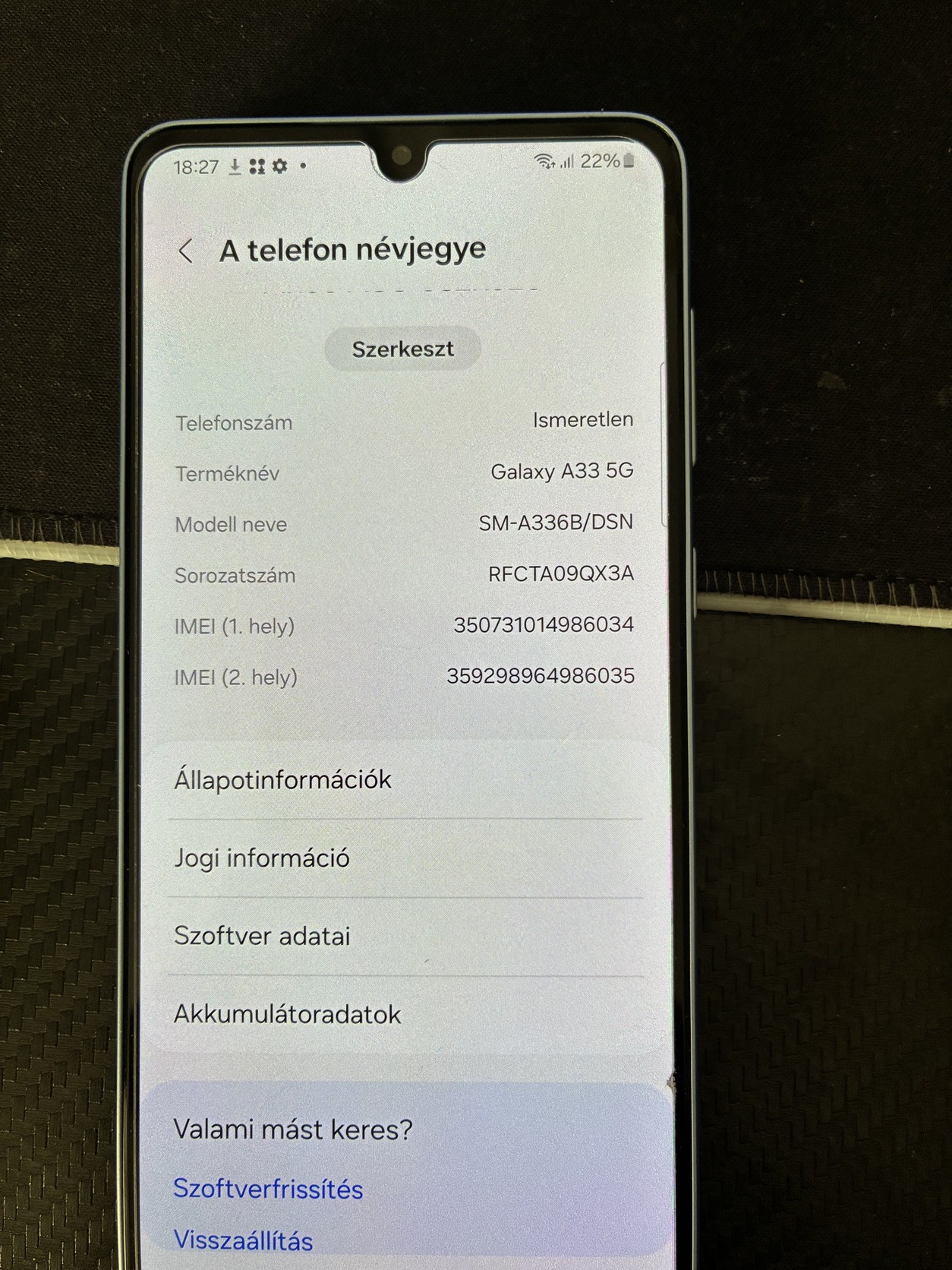 Eladásra kínálok egy kiváló állapotú Samsung Galaxy A33 5G dual simmes verziót, OEM-ben.