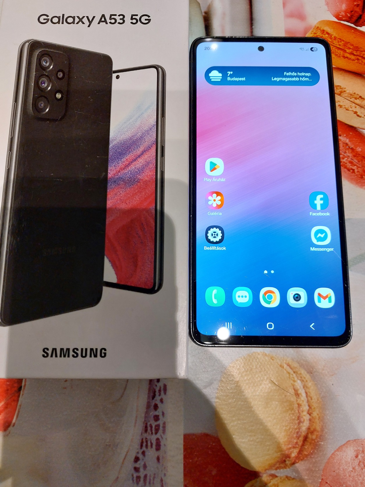 Eladó egy használt állapotú Samsung a53 duál simes készülék. A kijelzőn pár karc található de csak kikapcsolt állapotban látszik, keretét a tok megkoptatta, valamint a hátlap elvált (sajnos tipusbetegég), ami vissza lett ragasztva a hátlapon a ragasztó kis foltot hagyott próbáltam lefotózni. Működése hibátlan, kijelző nincs beégve, minden funkció hibátlanul működik, akksi is bírja 1 napot aktív használattal. Doboz, sim tű, adatkábel illetve egy gyári Samsung camera filter lencse jár hozzá. Személyesen dél Pesten megtekinthető vagy előre utalás után szállítás csomagautomatába. Az ár FiX!!!