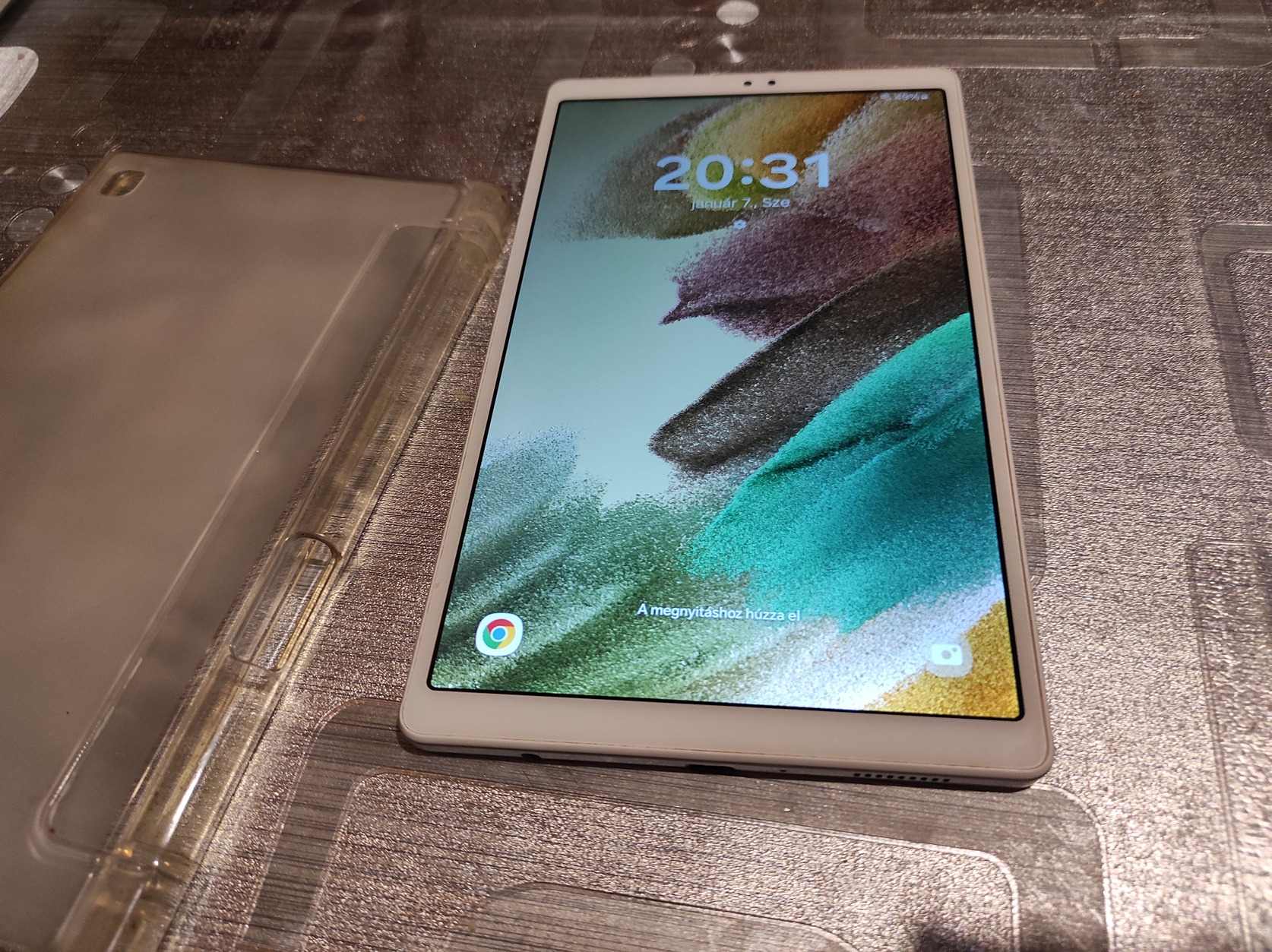 Samsung Tab A7 lite , kèpen látható állapotban, aprobb karcal ezt probáltam fotozni, használat közben èszrevehtetlen , kiváló működèssel , fix ára + 1690 foxpost