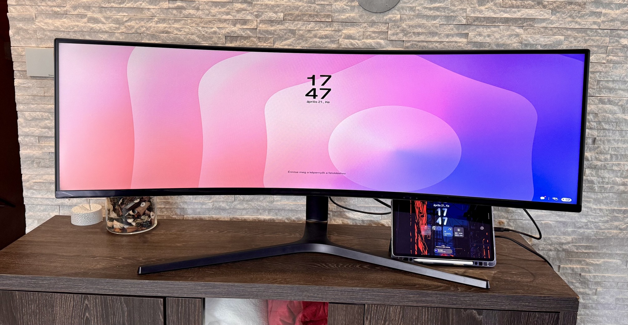 49” (32:9) – 3840×1080 felbontás 144 Hz képfrissítés USB-C csatlakozás (töltés + kép egy kábelen)
