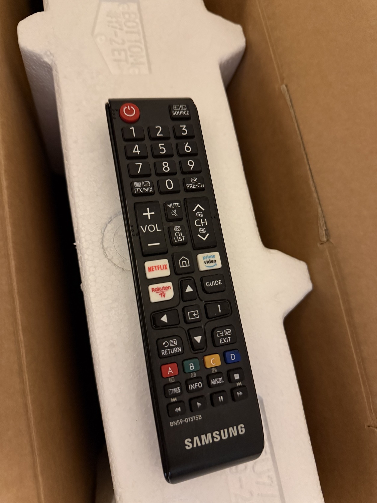 Minden megvan hozzá: lábak, távirányitó, kábel.