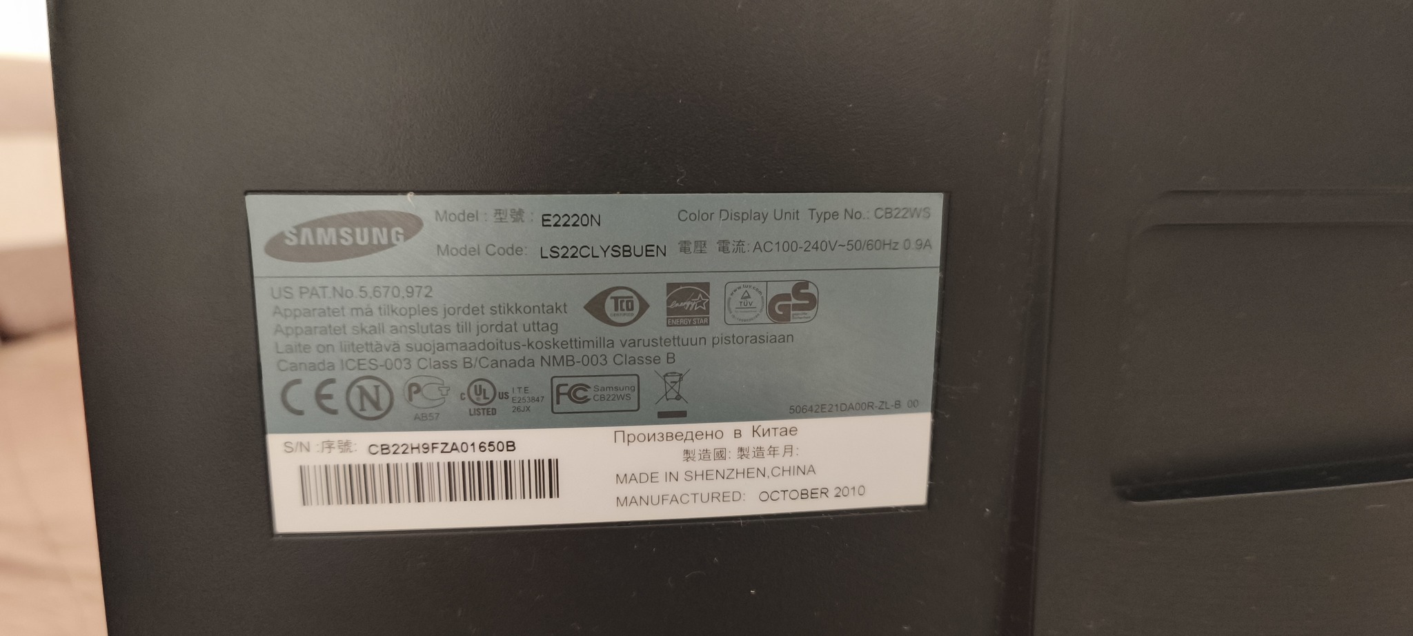 Eladó egy Samsung E2220N 22"-os FullHD LCD monitor + VGA kábel.