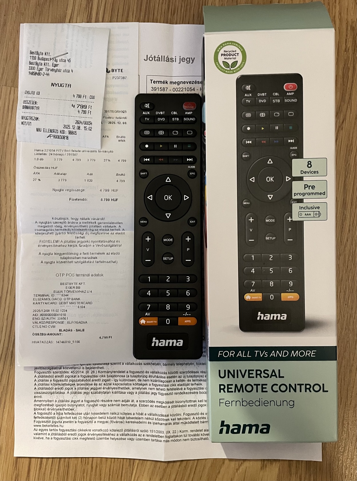 Új, csak párosítás idejéig használt univerzális távirányítóval.