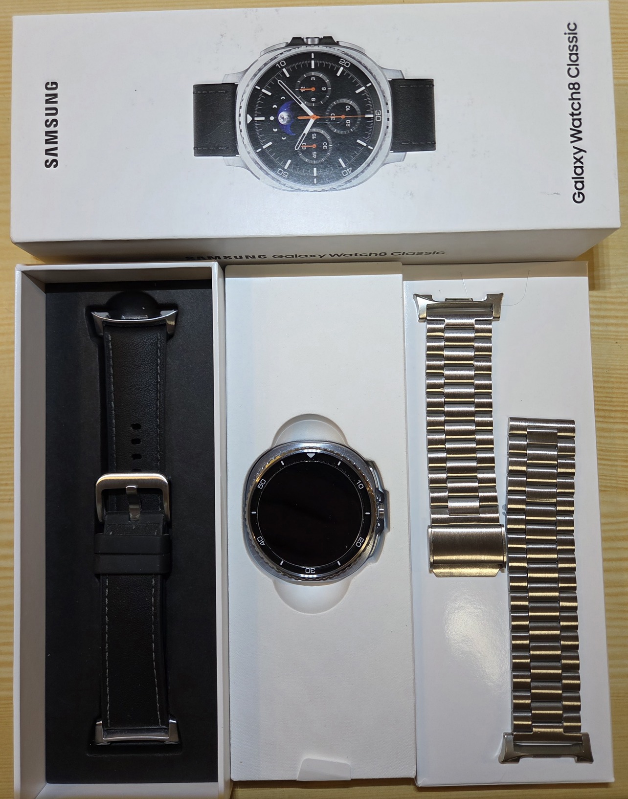Méret, és kompatibilitási probléma miatt eladó egy két hónapos Samsung Galaxy Watch 8 Classic óra, plusz egy fém óraszíj.