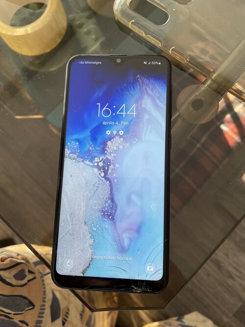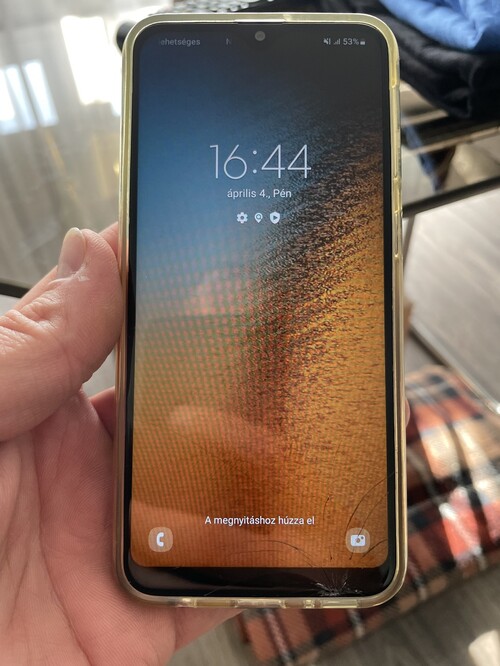A kijelző jobb sarkában van egy pici repedés, keveset volt használva, ezt leszámítva karcmentes a telefon.