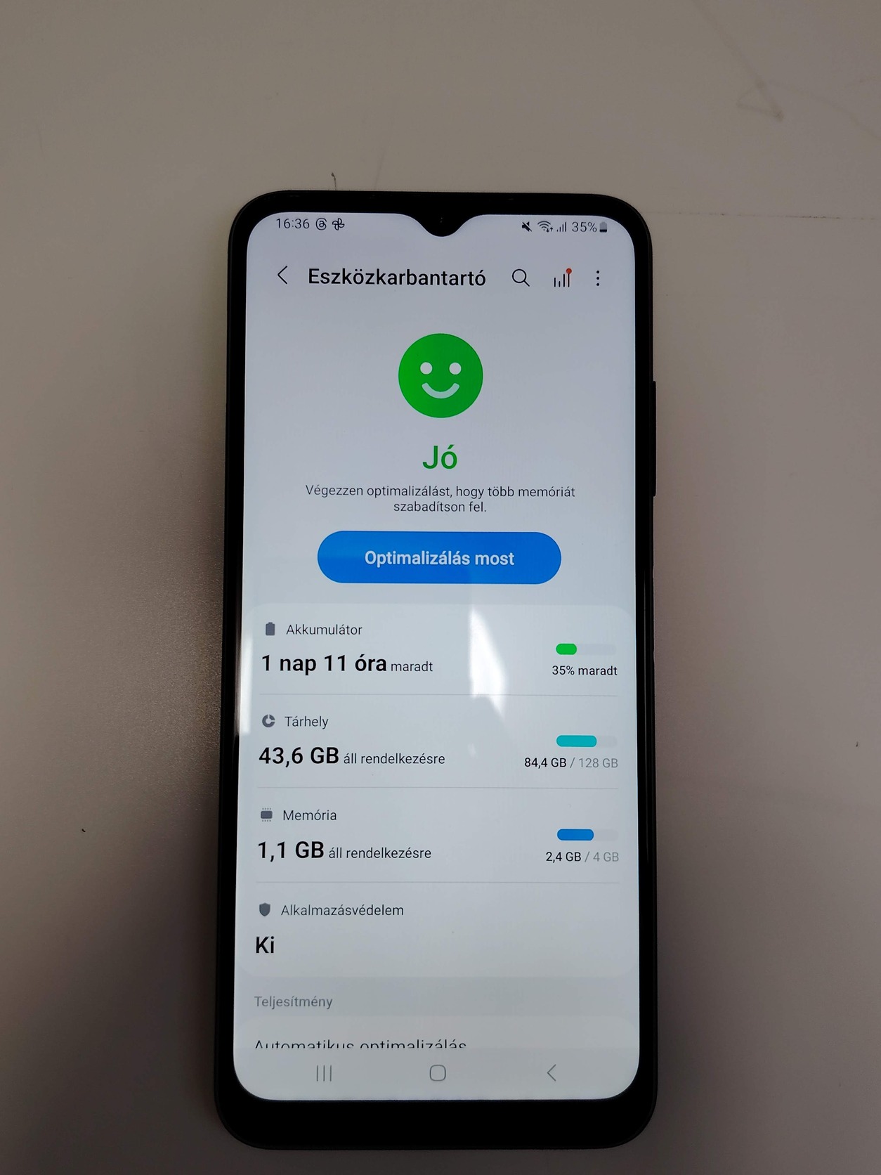 Tökéletesen működik, viszont enyhén karcos a képernyője, ami nem zavaró, hátlap viszont karcos és van rajta egy méllyebb karc vagy törés nem tudom eldönteni, valahol a 2 között van