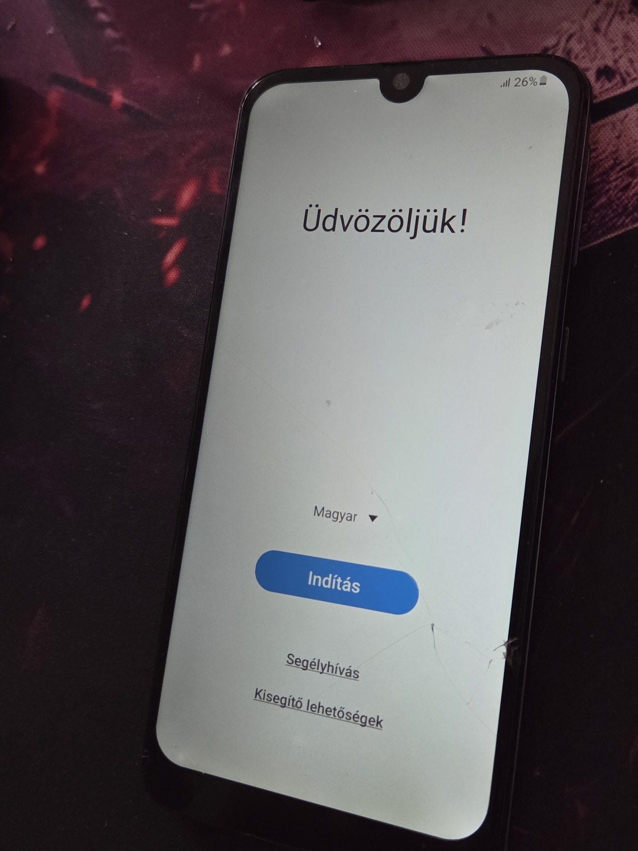 Kijelző utángyártott és törött, de működik.