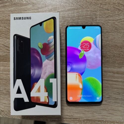 Eladó Samsung Galaxy A41 64GB Fekete, dobozával. USB-C töltőcsatlakozó. Repedések, ütődés és jelentősebb karcmentes! Végig tokban tartott, apróbb használati jelek felfedezhetőek.
