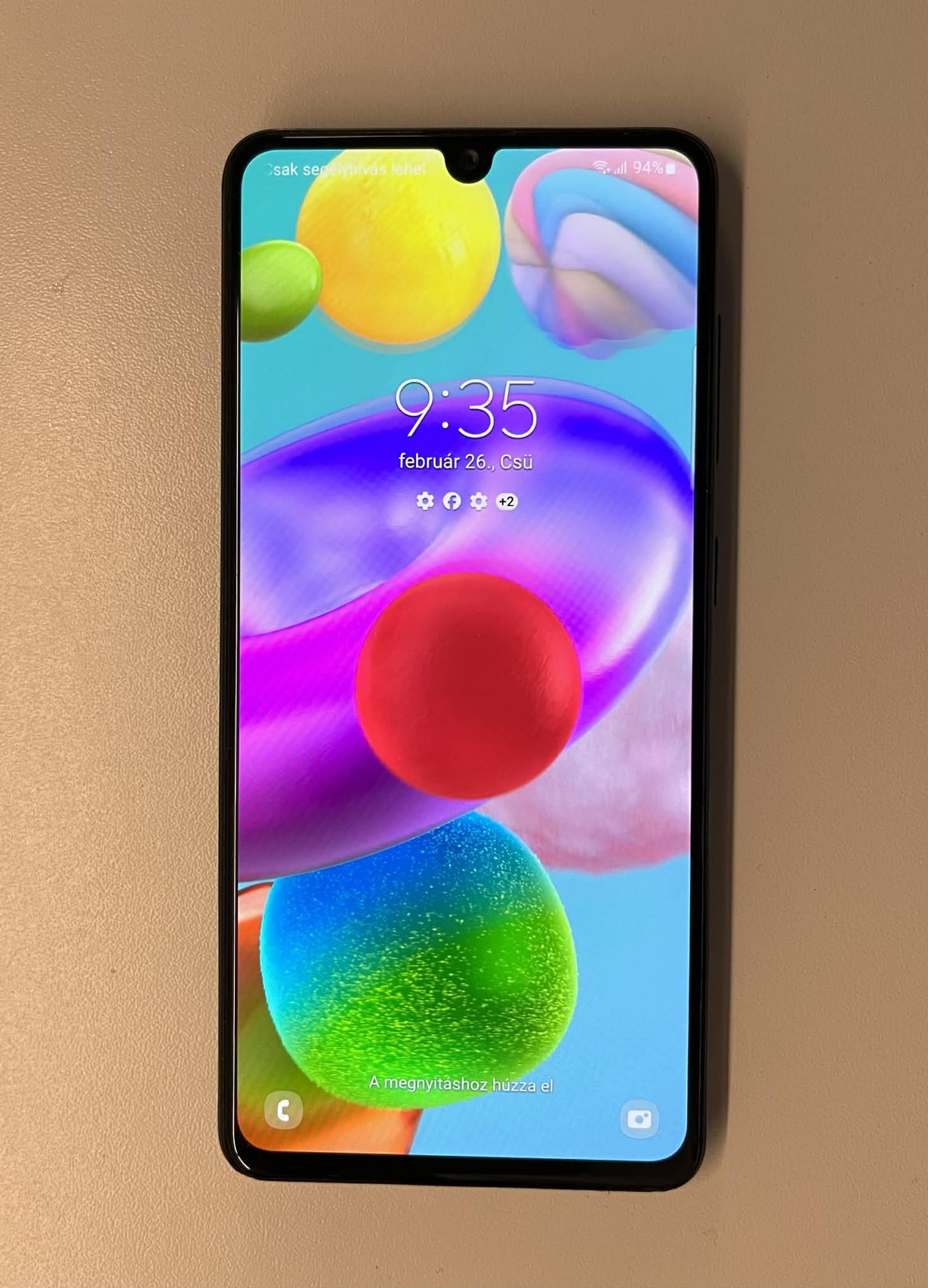 Néhány kisebb karc van a képernyőn, illetve a hátlapja némileg kopott. A hátulján egy autós tartóhoz használt fém korong van. Töltő, tok nélkül adom a telefont.