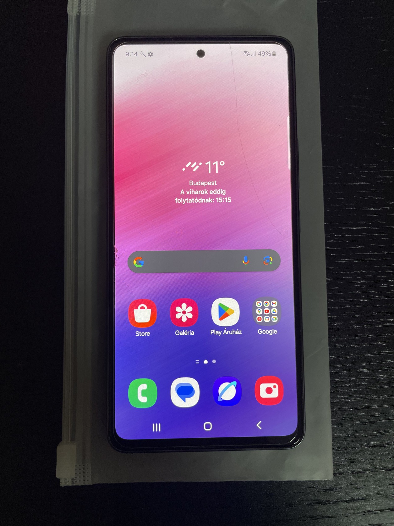 Kijelzőjén van egy már viseltes üvegfólia, de alánéztem, a kijelző sértetlen