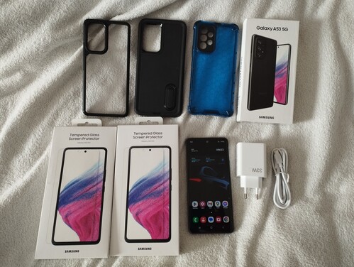 Samsung Galaxy A53(fóliás,tokokkal,üvegfóliákkal,töltővel)
