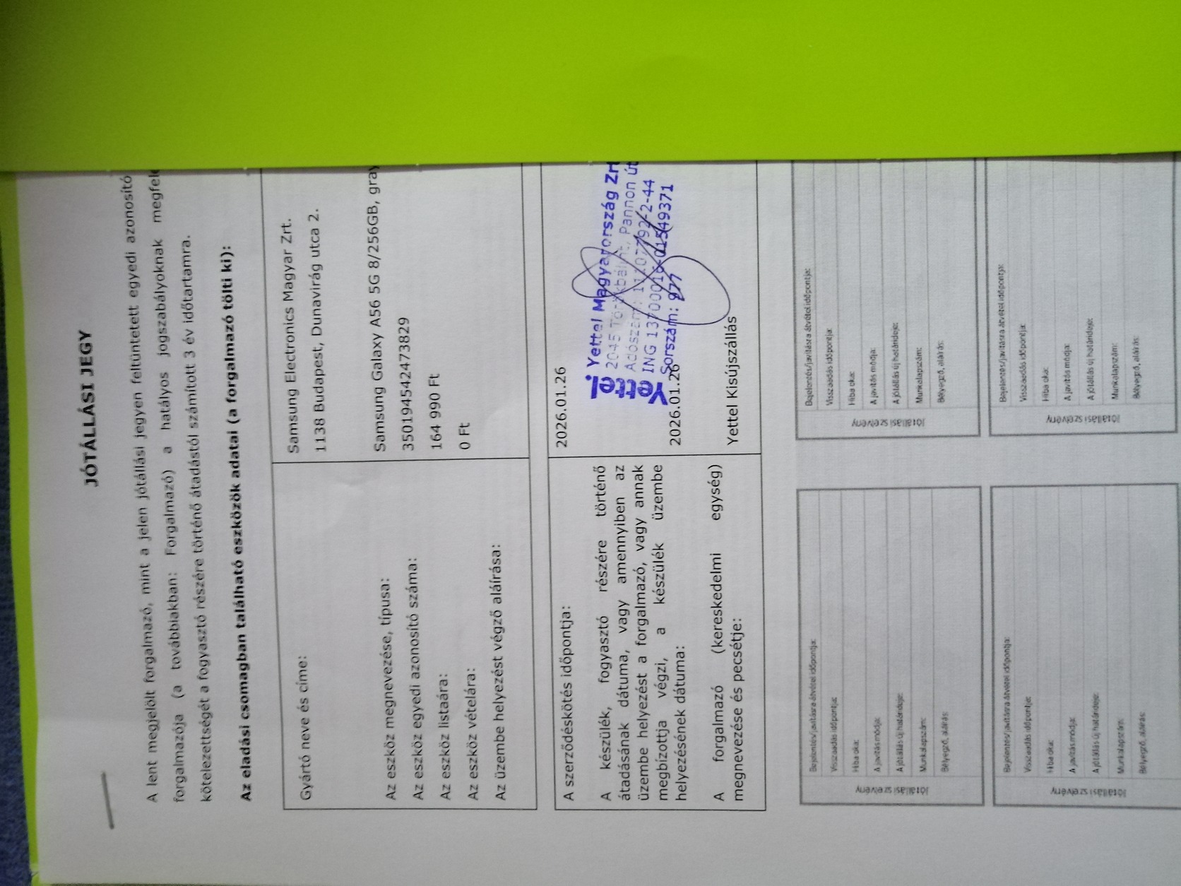 Csak jótállási jegy, 165000-res listaár és 0Ft-os vételár. Számla sehol.