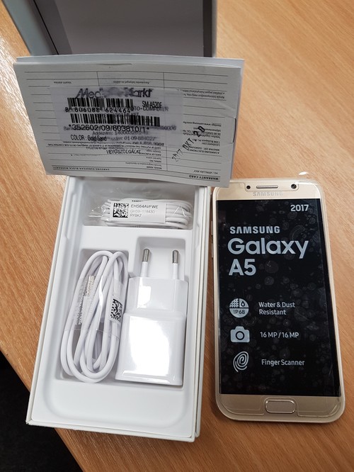 Samsung Galaxy A5 2017 (A520F) arany színben, kártyafüggetlenül, szép állapotban, dobozával és minden tartozékával, garancialevéllel eladó. 2017.10.28-i vásárlás, így még garanciális. Átvétel csak személyesen.