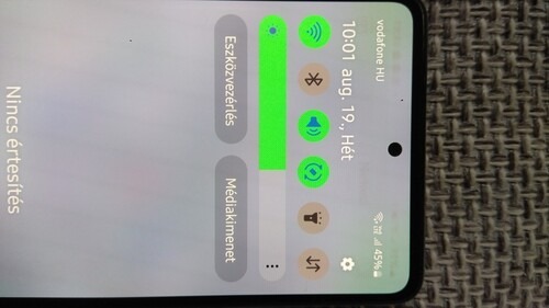 Amoled kijelzőjét sajnos utolérte a rá jellemző népbetegség, ugyanis néhány ikon- próbáltam fotózni- halványan beégett. Sötét téma használatakor nem látszik a hiba, világosnál sem feltűnő, de ott van... Sárgás elszíneződés nincs!