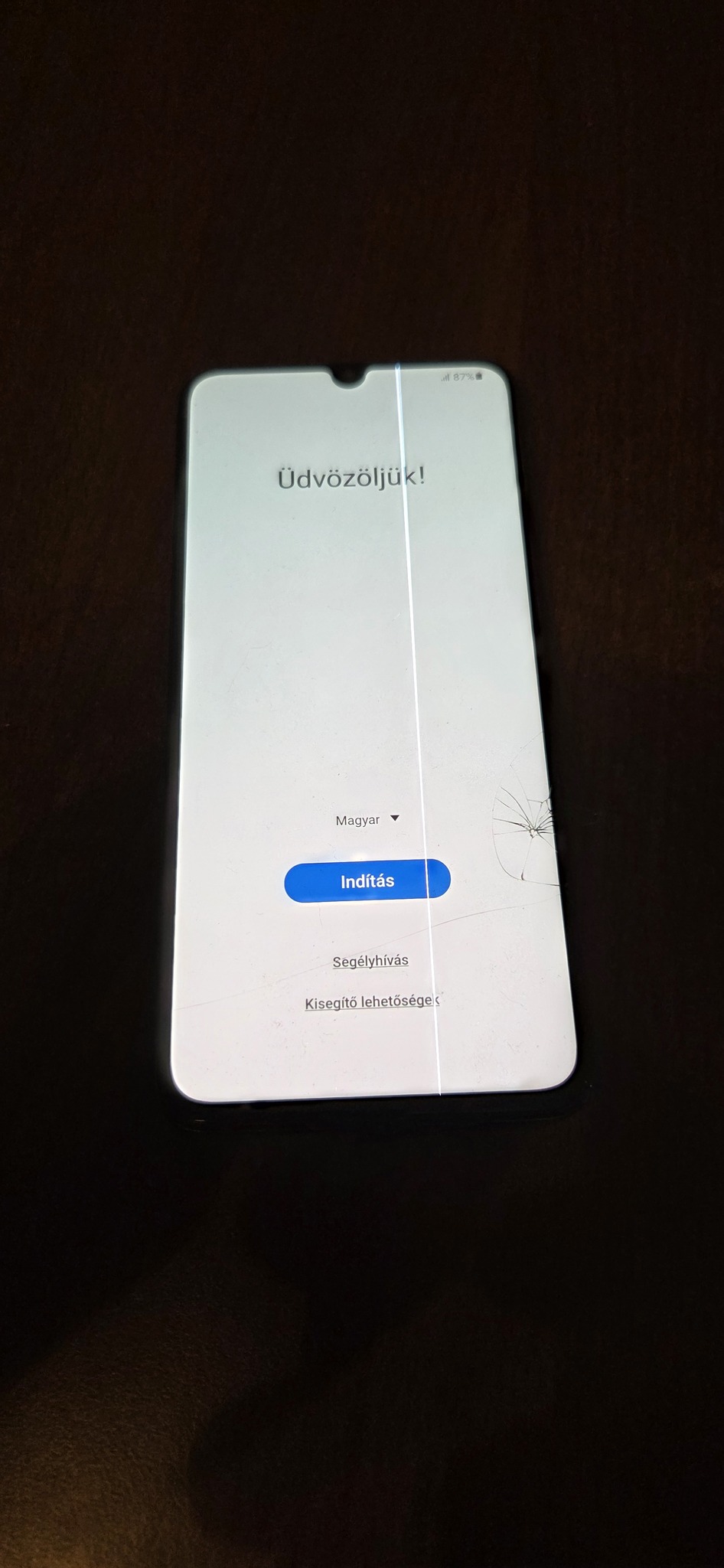 Dobozzal adatkábellel. A kijelzőn van egy sérülés. A képen látható.