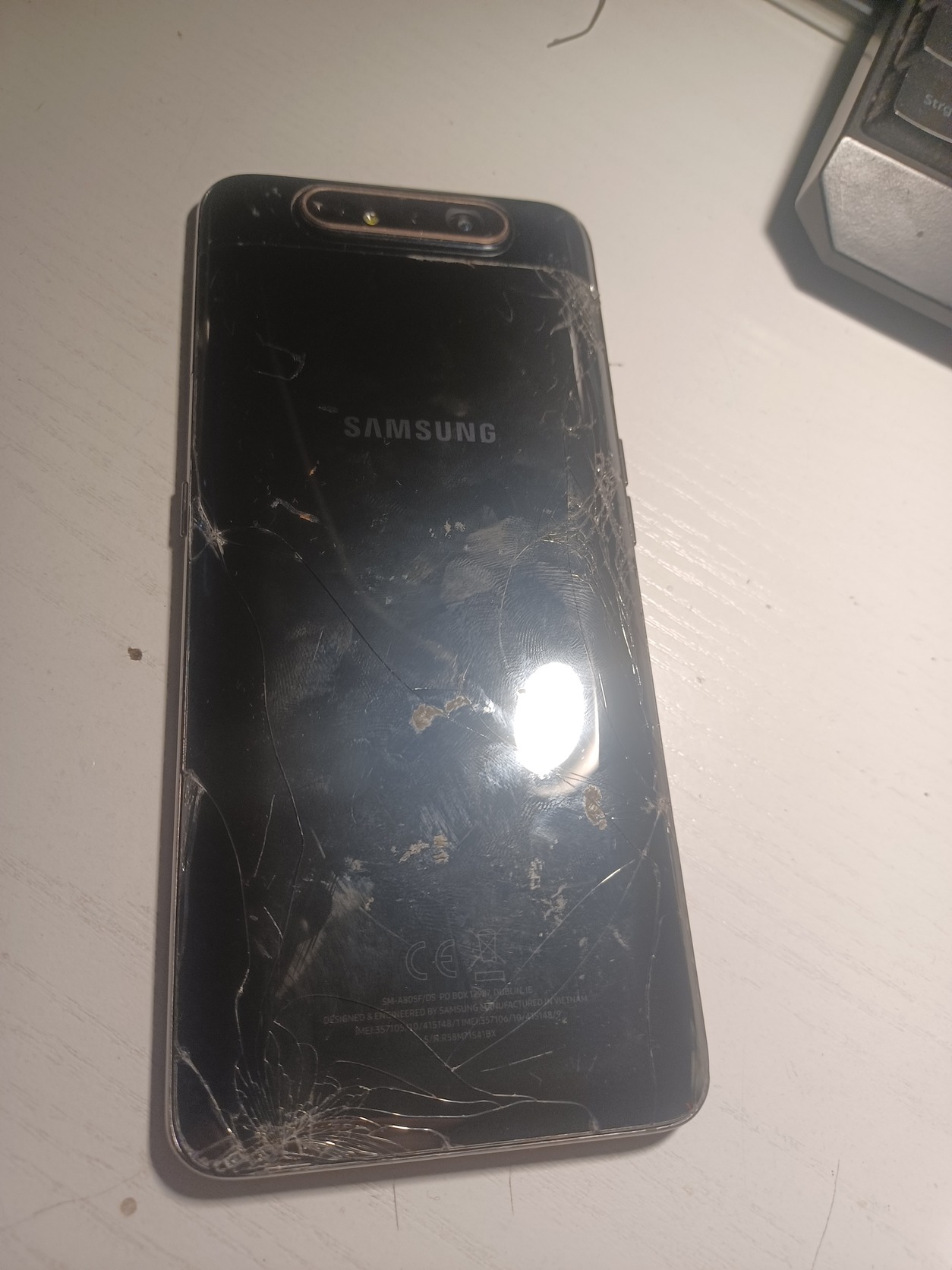 Eladó Samsung Galaxy A80 , Törött kijelzővel! Törött hátlap! Alkatrésznek alaplap hibátlan! Fiók és jelkod mentes! Foxpost megoldható előre utalással.