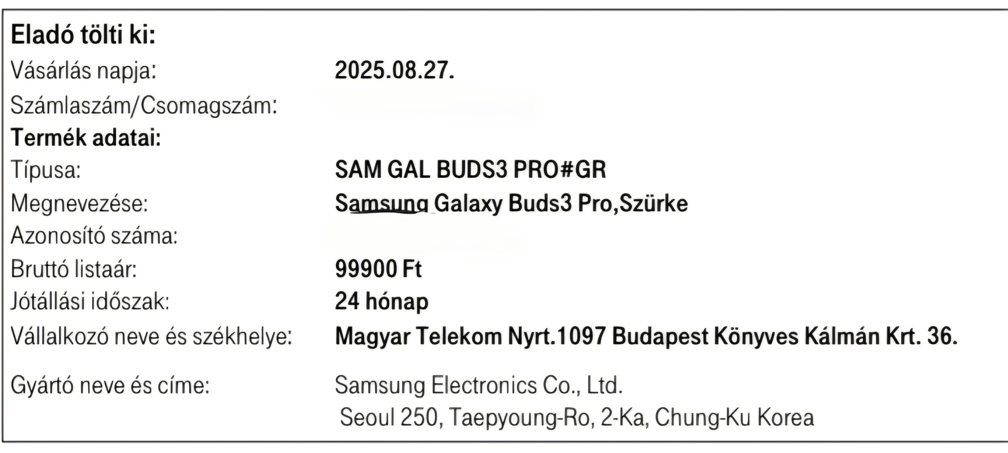 2 év teljeskörű garancia van rá 2025.08.27-től.