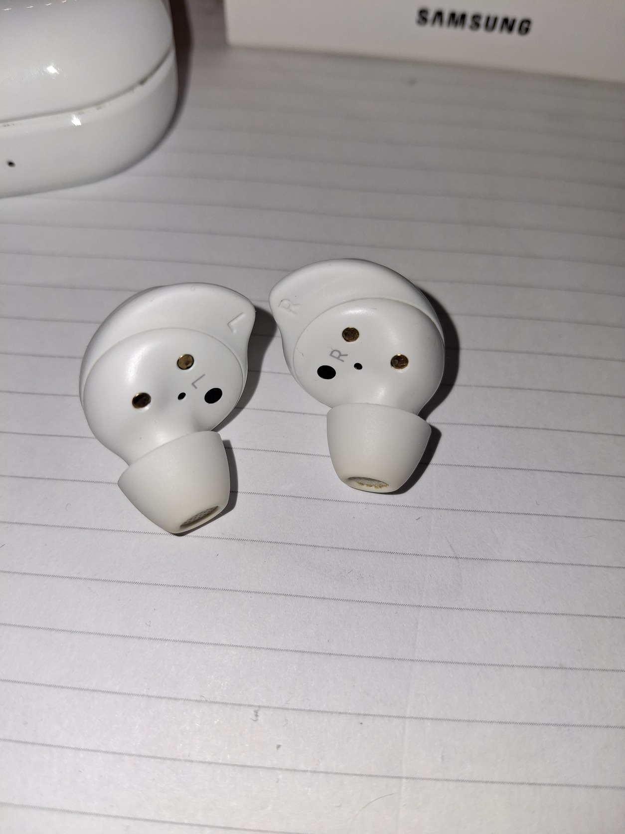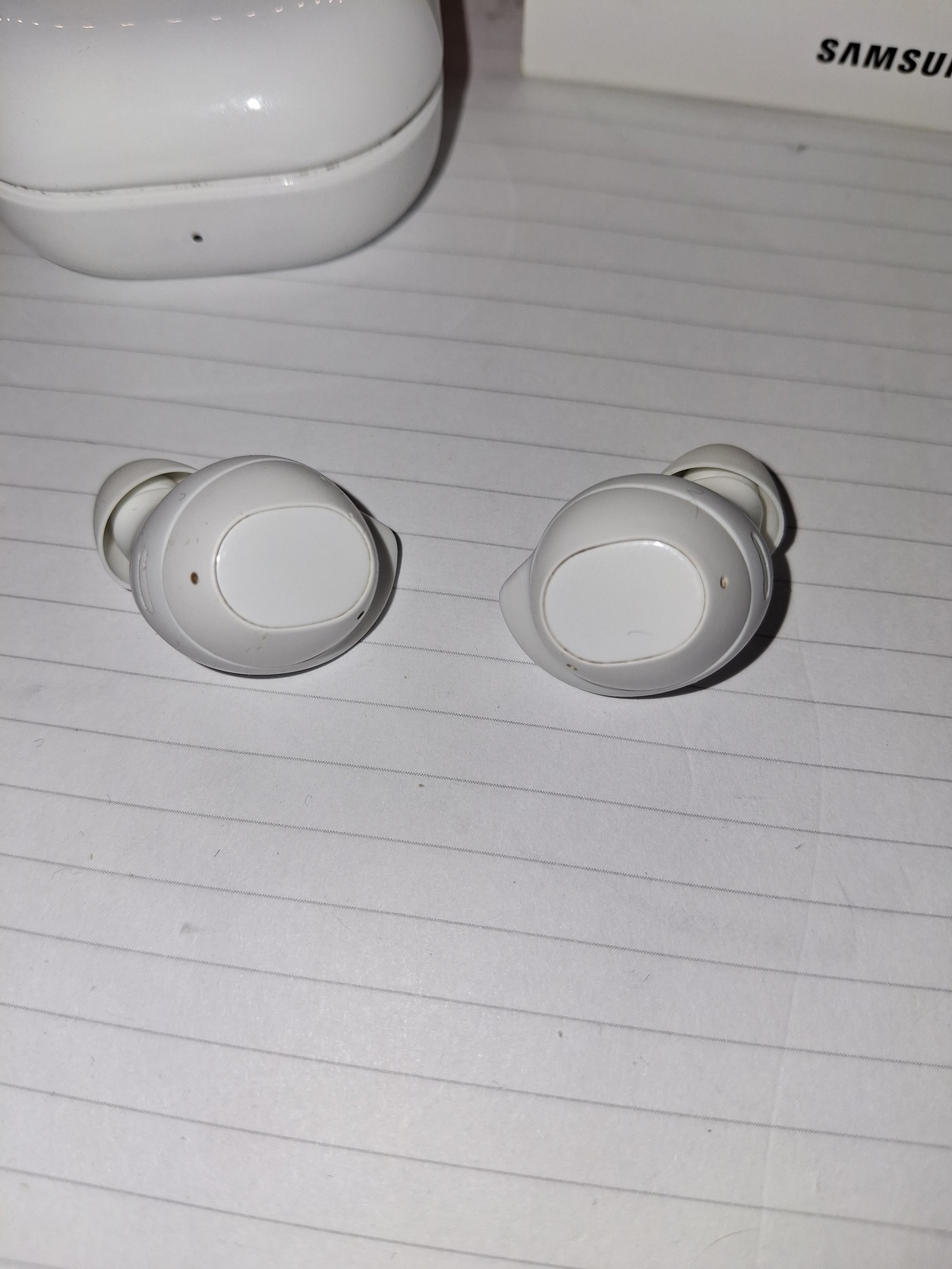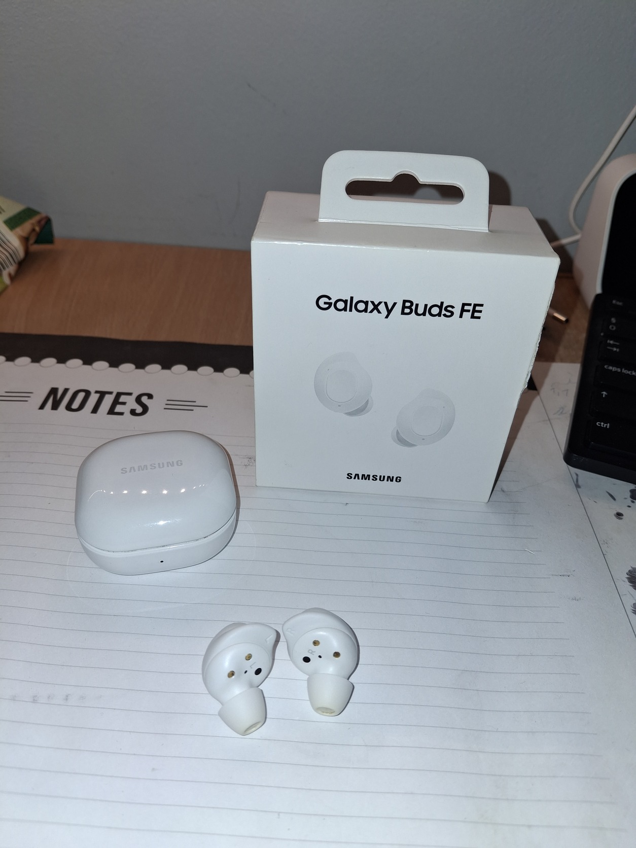 Eladó a fentiekben látható Samsung Galaxy Buds FE típusú fülhallgató. A füles szép állapotban van és a használati idő nagyobb részében volt rajta tok, így a töltőtok nem sérült. A fülhallgatót természetesen fertőtlenítés után adom át vagy postázom el.