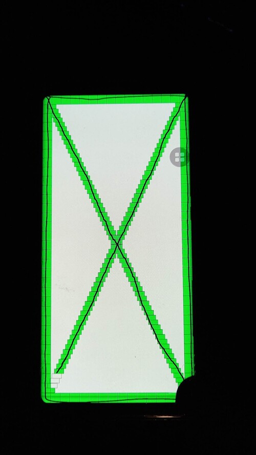 ~A képernyő jobb alsó sarka egy kis részben törött viszont a kijelző 100%-ban érzékel mindenhol. (Képet csatoltam)(Direkt hagytam ki a jobb alsó 2 kis kockát mert ha teljesen körbe rajzolom bezáródik a touch test)