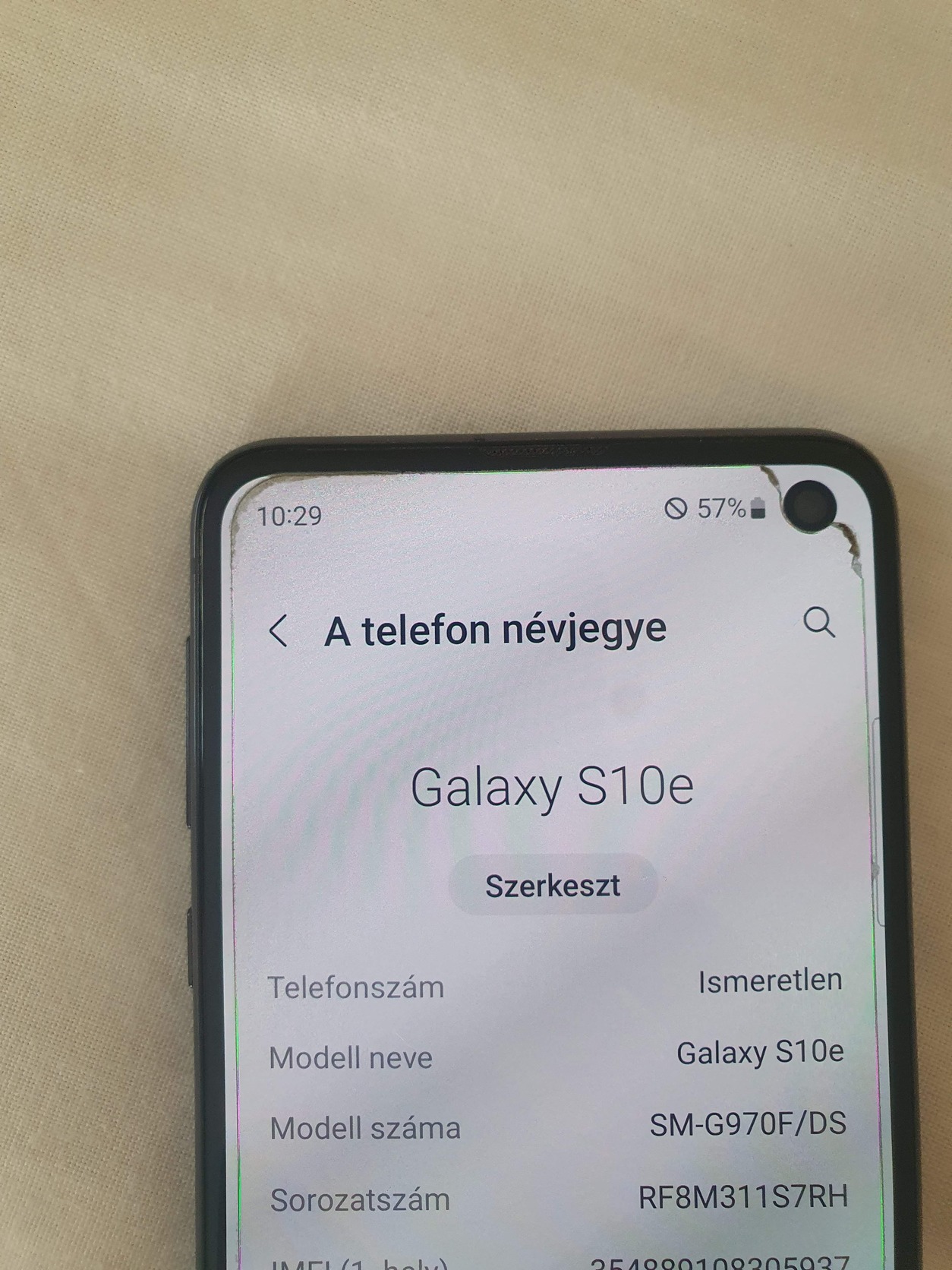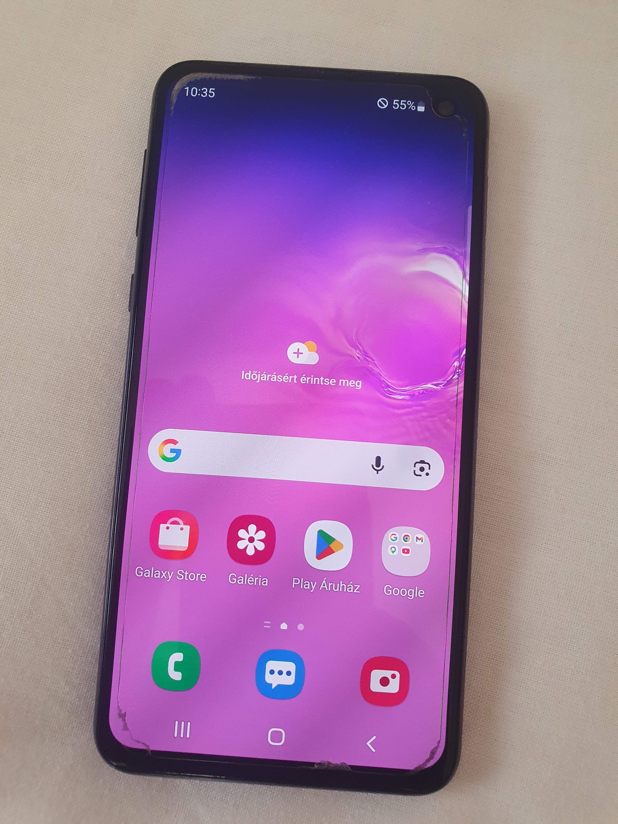 Samsung Galaxy S10e , töltő, kábel nélkül, szép jó állapotú, nem kopott ,