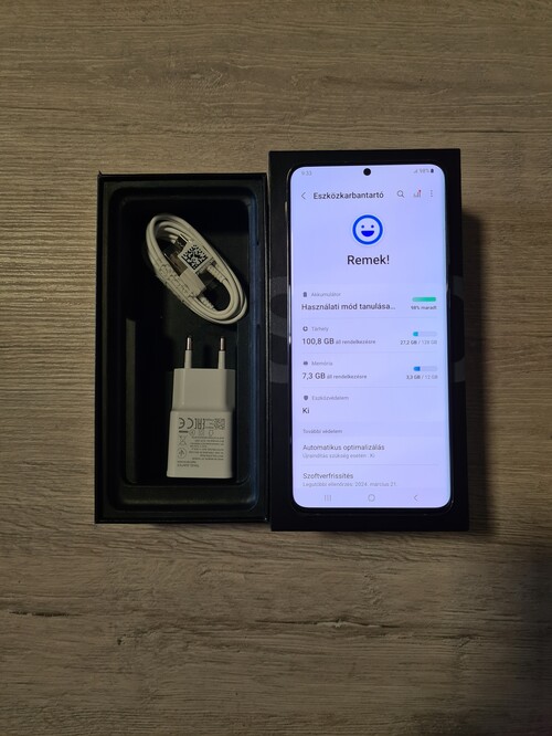 Jár hozzá a doboza, töltő és kábel.