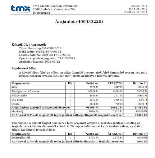 Regalaxyban felújított készülék.