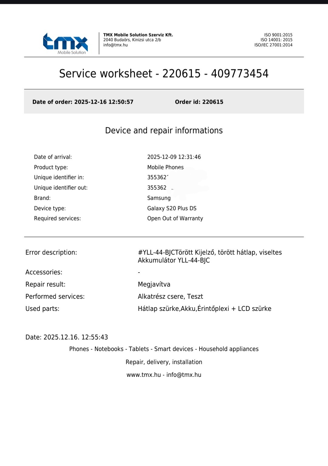 A készülék gyakorlatilag új karcmentes, új Akku -val.