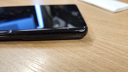 A keret sajnos karcos, a képeken látható kék tok és a telefon közé szorult por/kosz okozta. A gyárit azért nem használtam, mert az vastagabb. Utólag már látom, hogy hiba volt :/