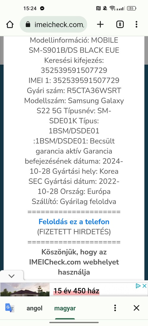 Eladó Samsung Galaxy S22/Gyári független/(Lásd a képek közt)