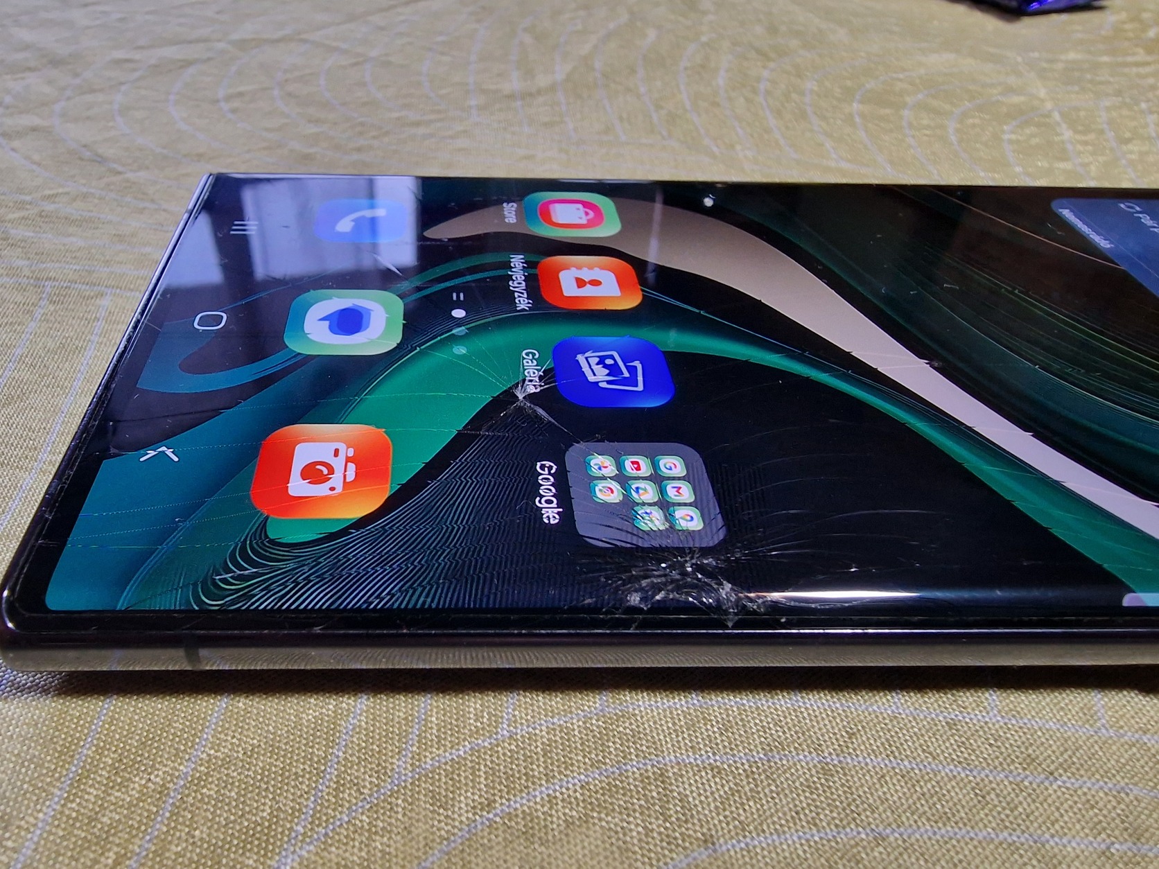 Sajnos a kijelző repedt de, nem folyt be sehol sem.