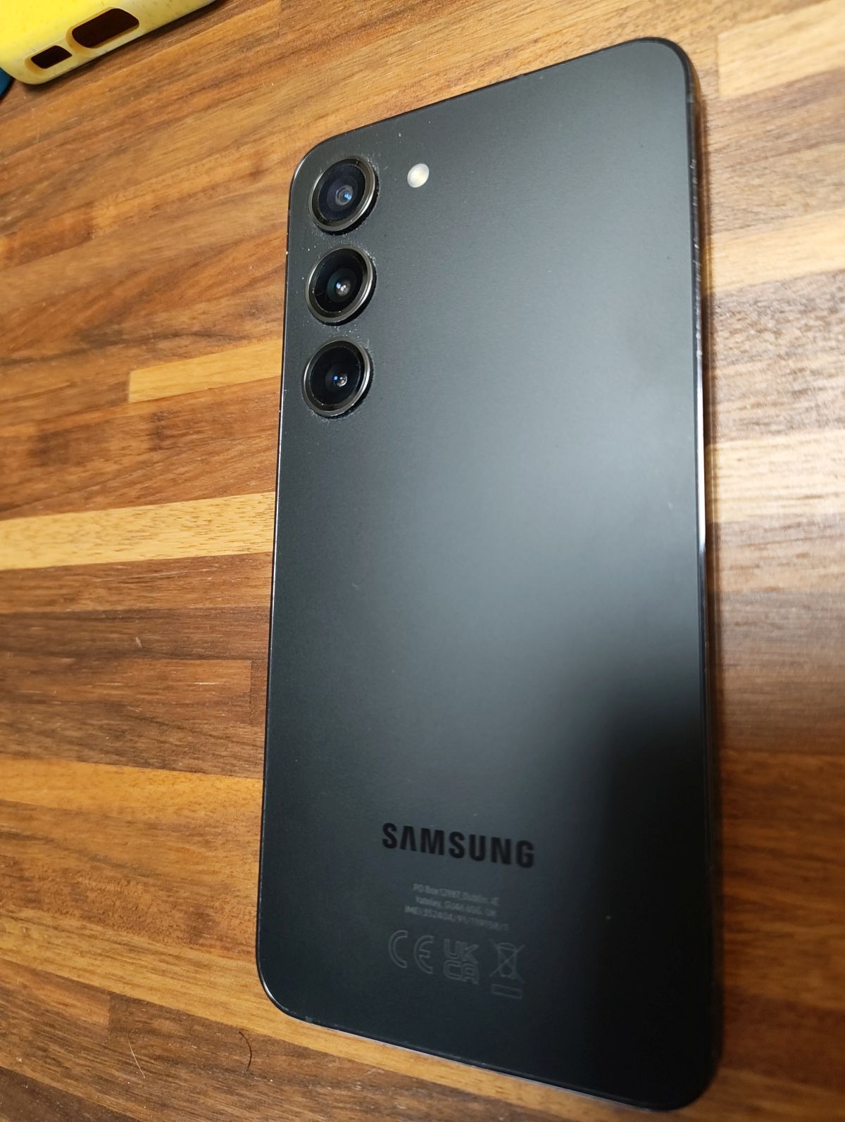 Csere miatt eladóvá vált egy kártyafüggetlen fekete Samsung Galaxy S23 telefon.