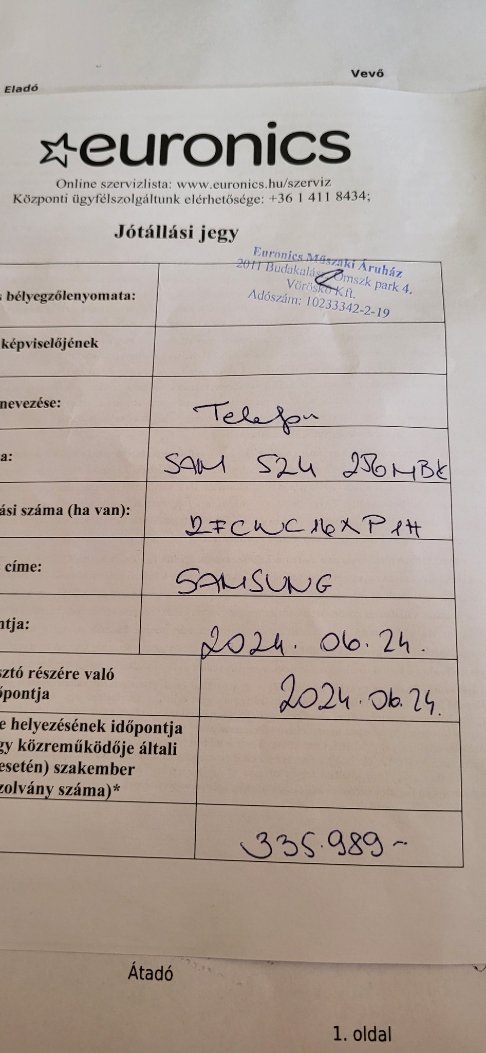 Samsung galaxy s24,2 év garanciával