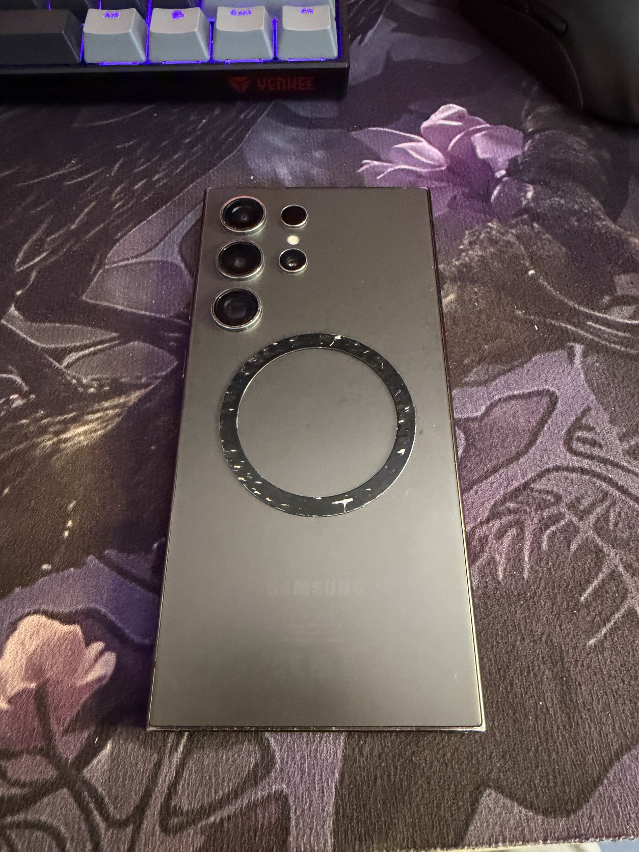 A telefon kerete és hátlapja viszont enyhén kopott a tok használata miatt – ez kizárólag esztétikai jellegű, a működést semmilyen módon nem befolyásolja.