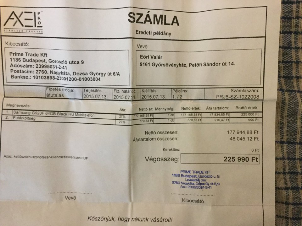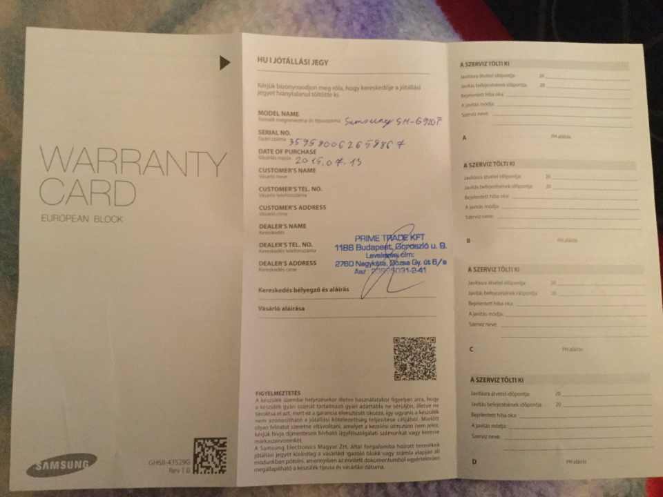 Vásárolva lett 2015.07.13 tehát még garanciális