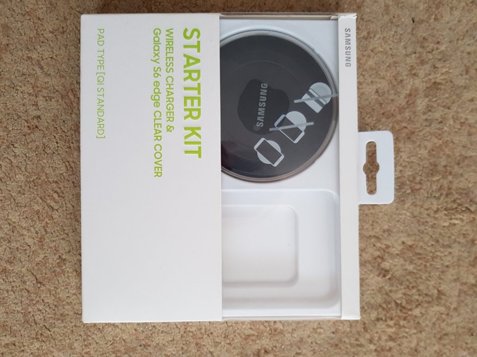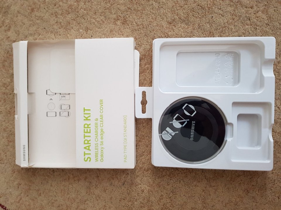 Eladó a képen látható Samsung Galaxy S6 Edge Starter Kit Wireless Charger & Clear Cover. Sosem használt, vadonat új, dobozában.