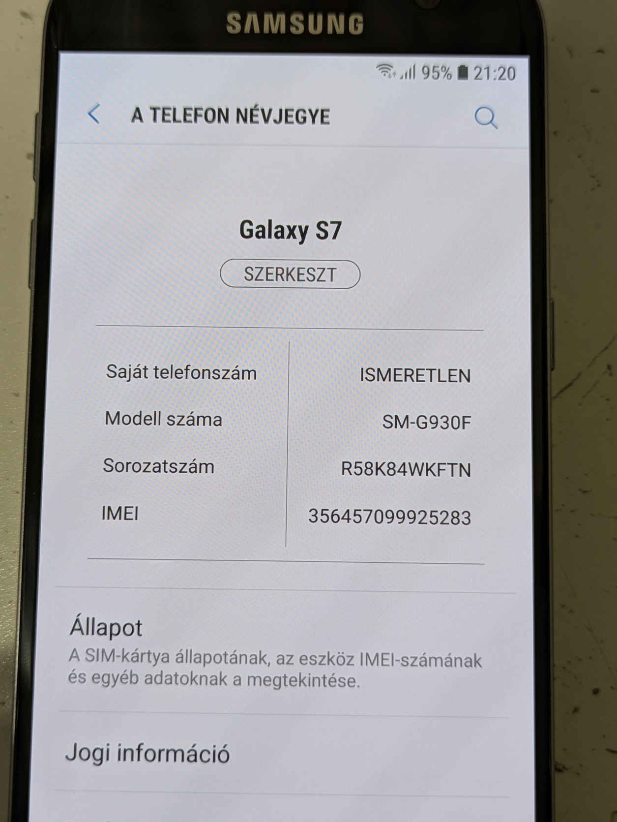 Samsung Galaxy S7 (független) eladó!