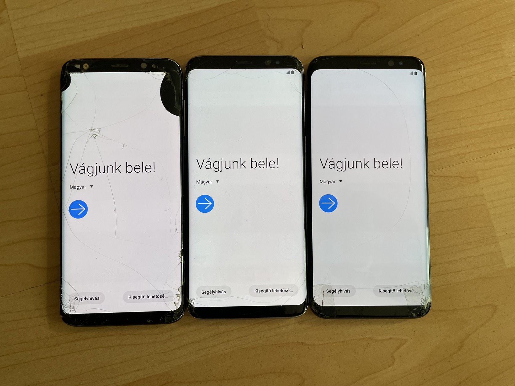 Üvegeik a képen látható módon sérültek, az egyik kijelzője sérült. ezt leszámítva hibátlanul működik mindhárom - még a sérült kijelzős darab is érzékeli az érintést a sötét területen