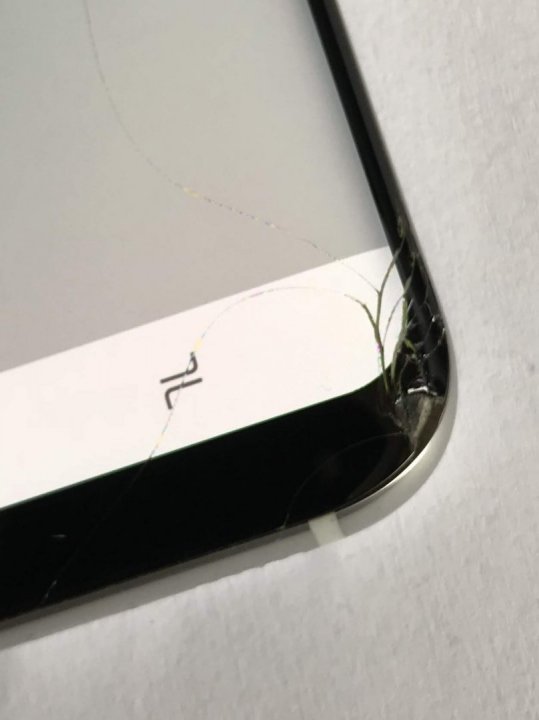 Az kijelző jobb sarka és jobb szélén az üveg sérült.