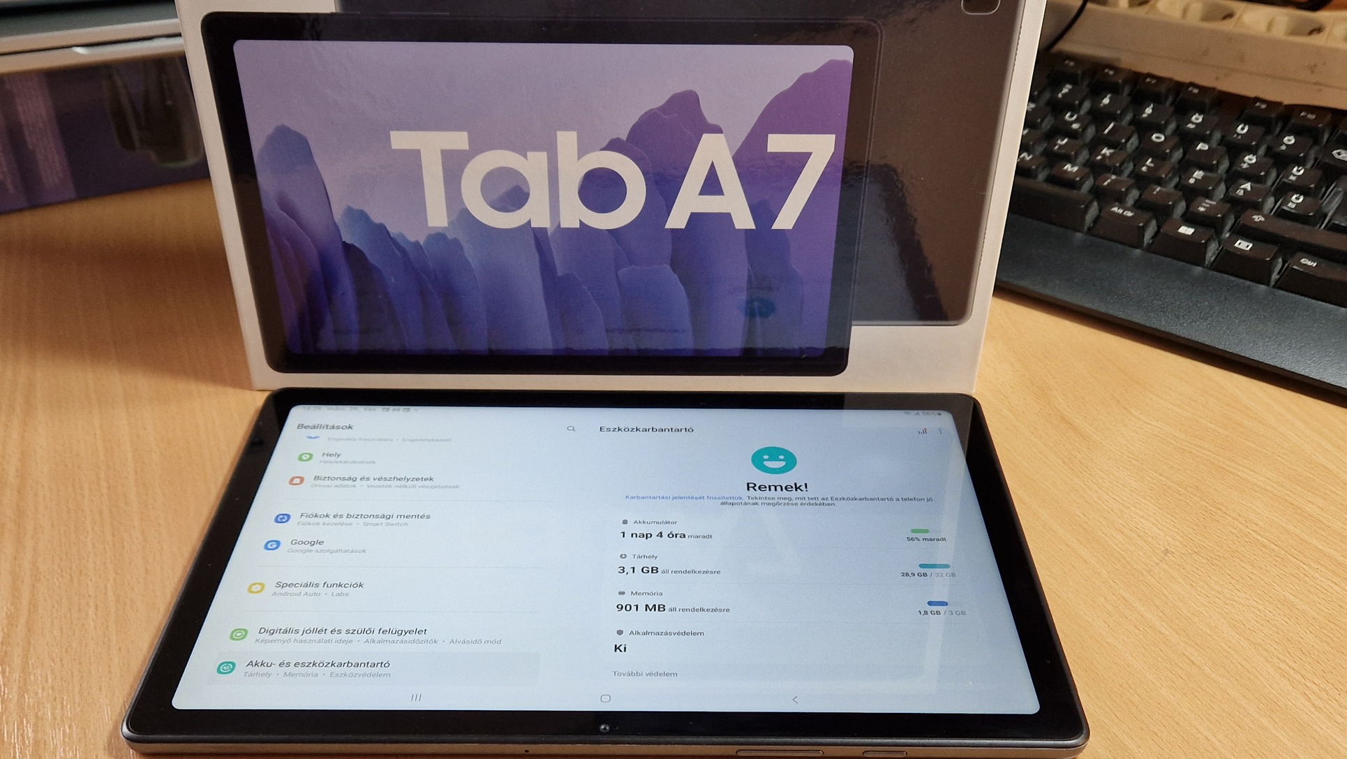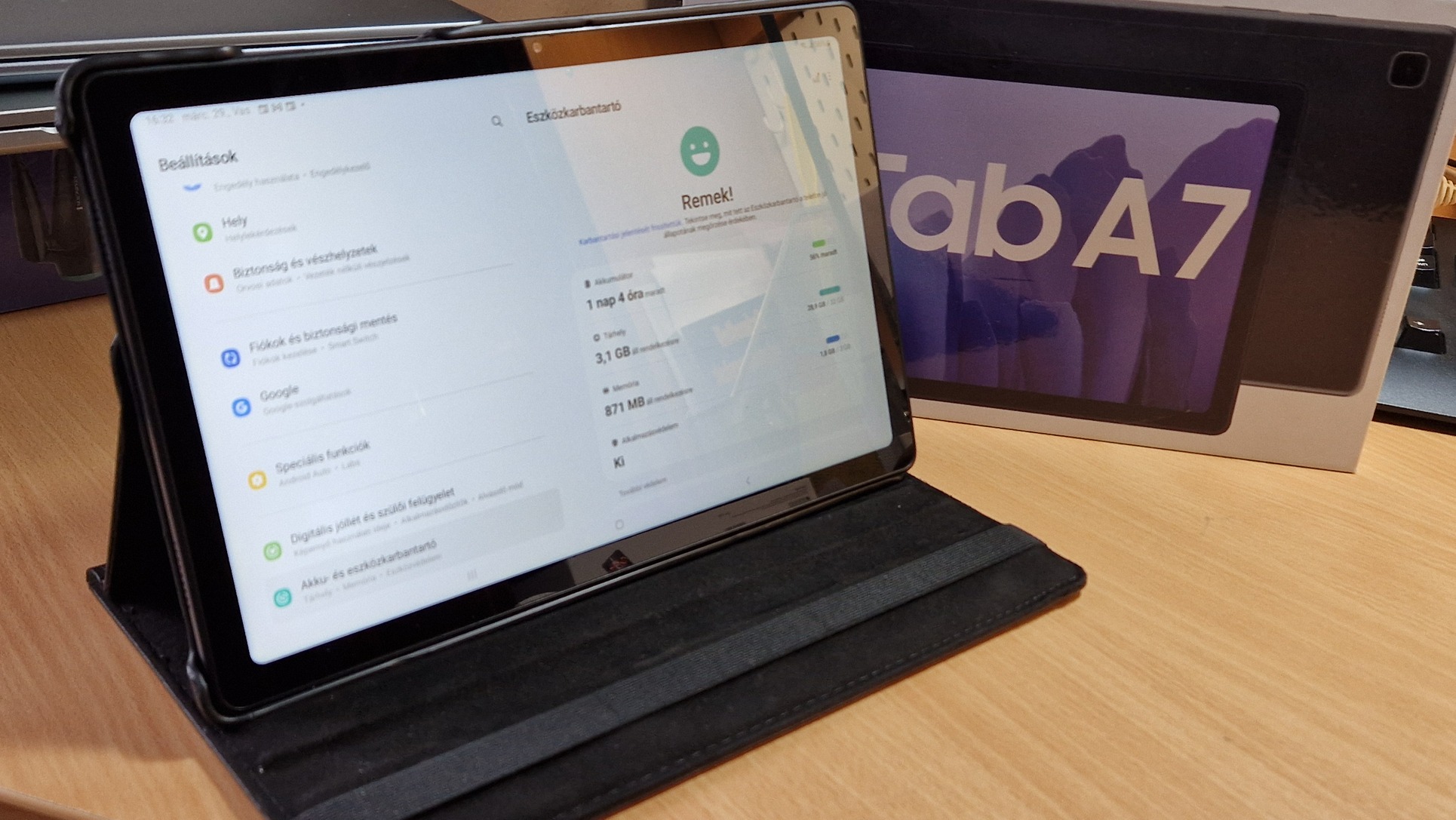Adom a dobozát és egy fél éves tokot ami forgatható, 2-3 pozicióban a dőlés szög beállítható az asztali használatnál.