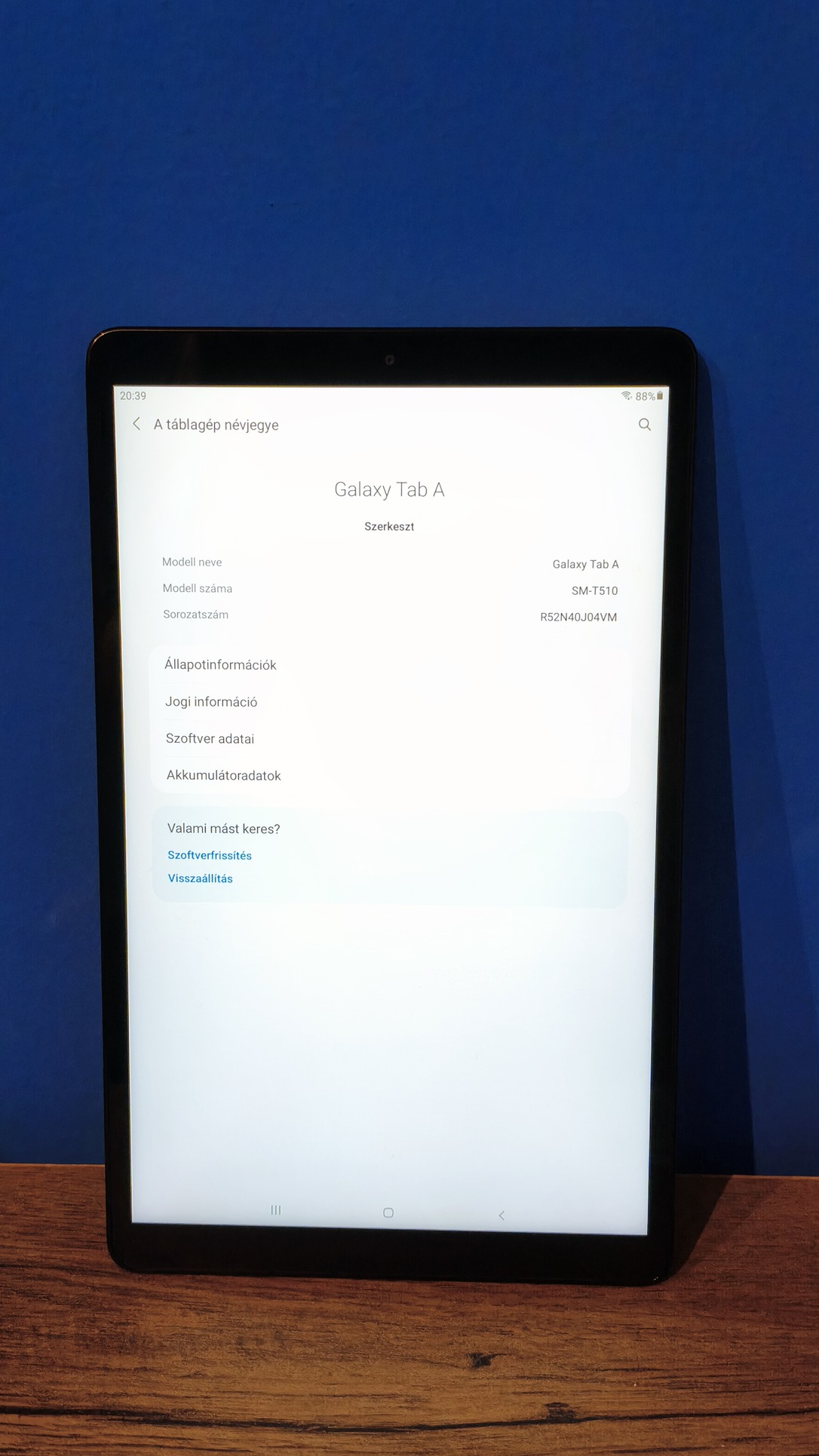 Eladó egy megkímélt állapotú Samsung Galaxy Tab A 10.1 (SM-T510) tablet.