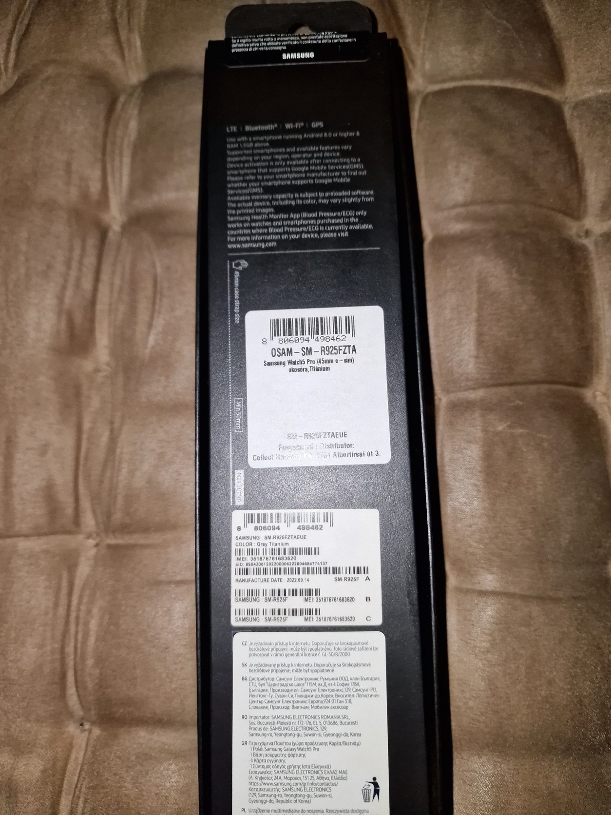 Eladó a képeken látható Samsung Galaxy Watch 5 Pro LTE okosórám szürke titán (Gray Titanium) kivitelben. Ez a strapabíróbb, zafír üveggel és titán házzal szerelt Pro változat, amely LTE-képes (eSIM-mel telefon nélkül is használható)